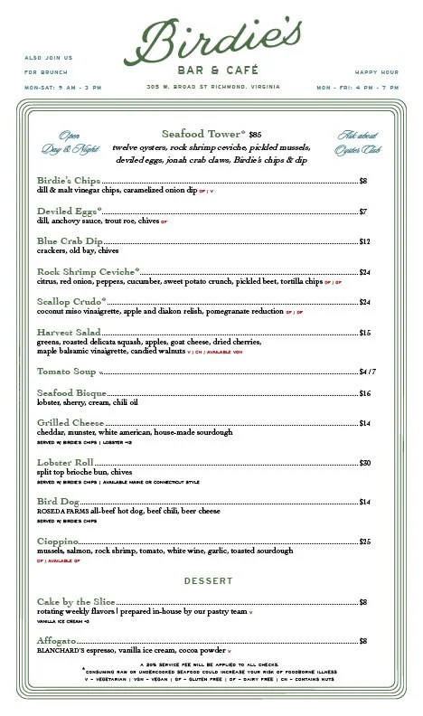 Birdie’s is a cafe, oyster bar, and wine cellar.